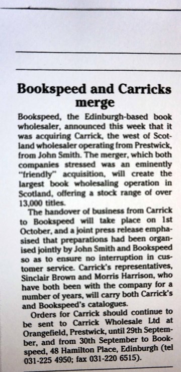 As we know, starting a business is very exciting and nobody knows everything from the off, which means that there is a lot of learning along the way. Annie and Kingsley’s experience was no different. Similarly, you cannot predict the opportunities that present themselves as a company grows. In 1992, Bookspeed saw an opportunity to purchase a rival book wholesale company based in the West of Scotland called Carrick.