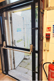In our warehouse we have a gated back door for ventilation and cooling the old-fashioned way! Without air conditioning, using wind power to get a breeze through the length